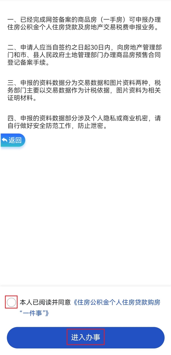 四、认真阅读办理须知,无疑问勾选“本人已阅读并同意”,点击【进入办事】。