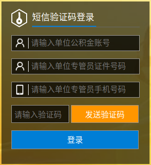 选择“单位用户”,选择“短信验证码登录”,根据提示输入单位公积金账号、经办人身份证号码、手机号码及短信验证码登录。