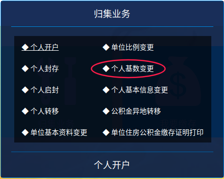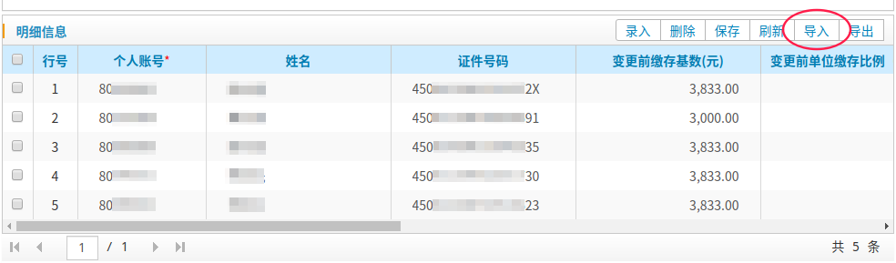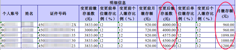 图片演示:导出“个人基数变更列表”,录入新基数和月缴存额。
