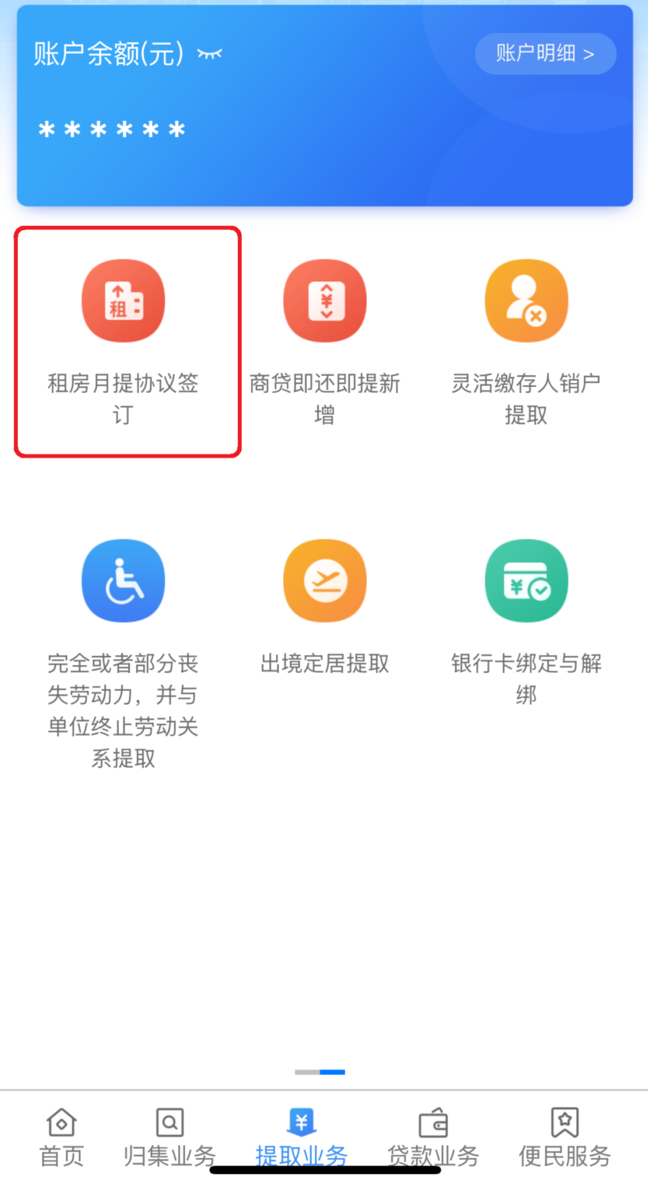 请点击“提取业务”进入下一页面。
