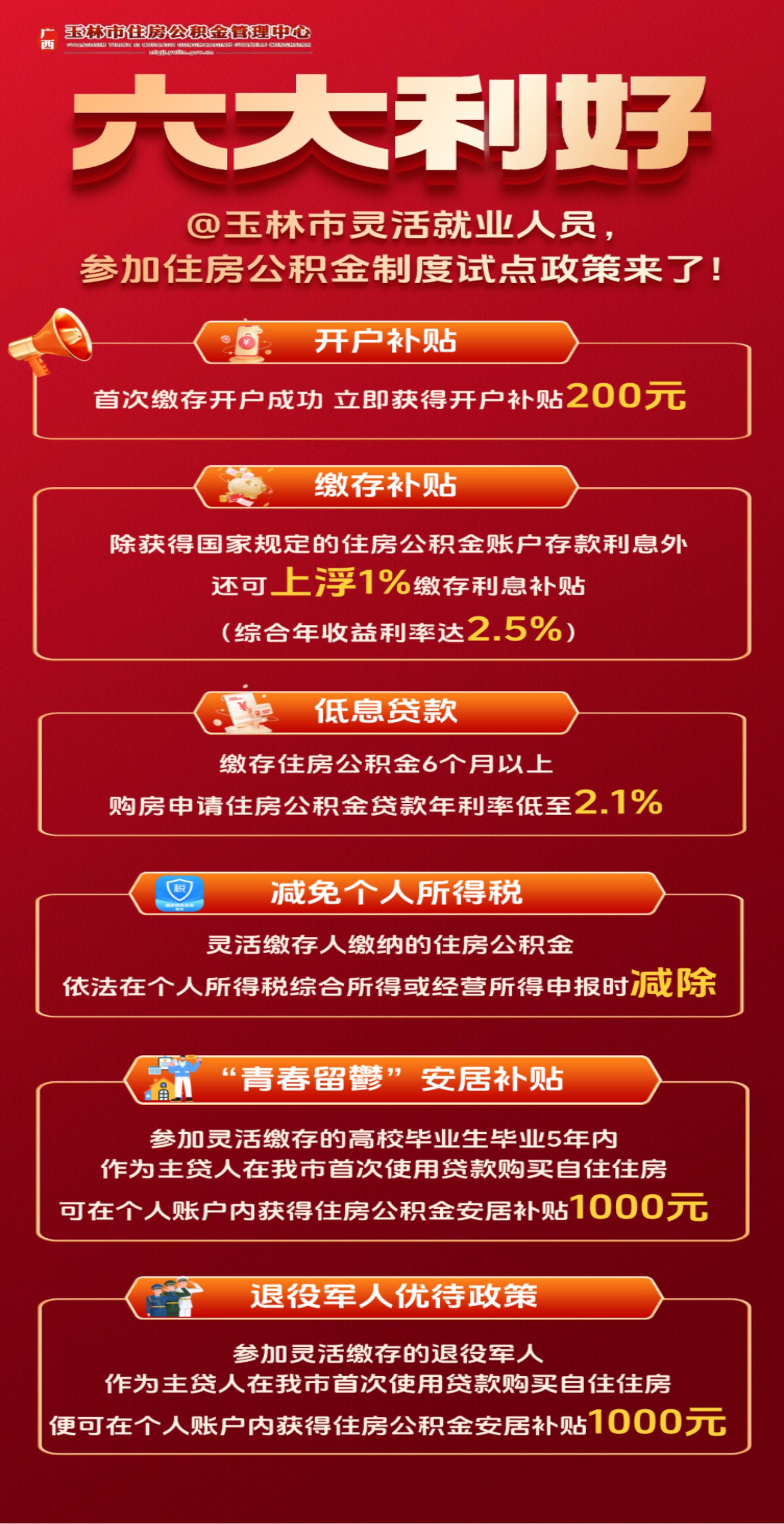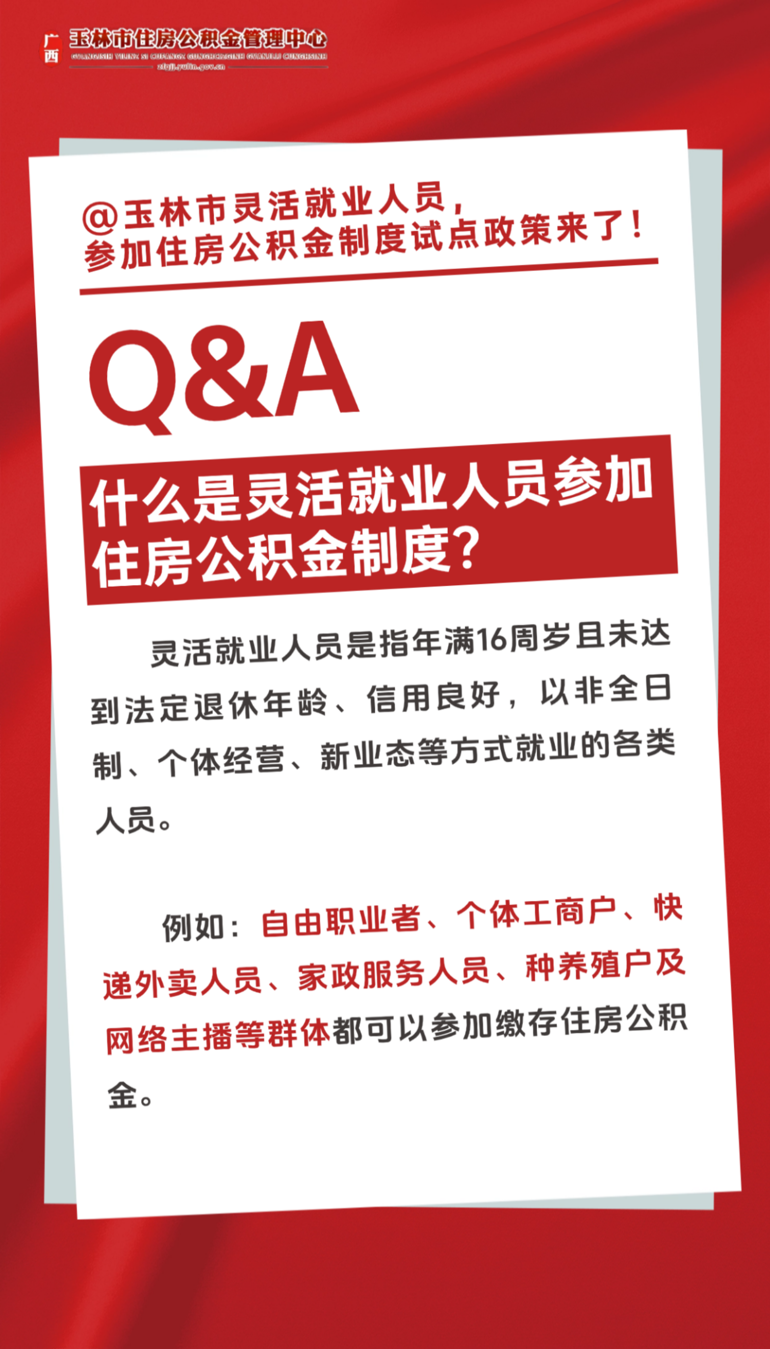 @玉林市灵活就业人员,参加住房公积金制度试点政策来了!