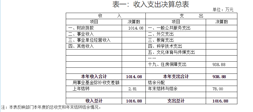 表一:收入支出决算总表
