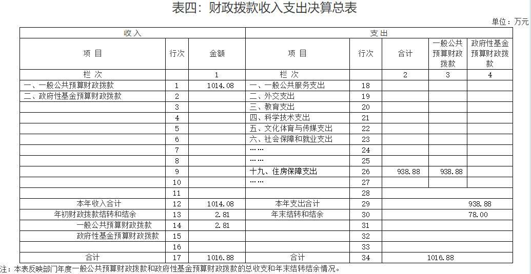 表四:财政拨款收入支出决算总表