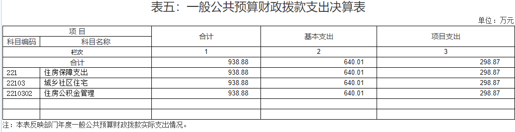 1.住房保障支出(类)938.88万元:主要用于我中心的人员经费、日常公用和业务工作经费、设备购置经费等方面的支出。