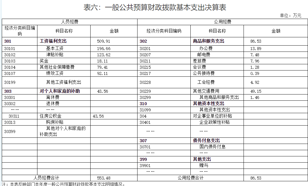 表六:一般公共预算财政拨款基本支出决算表