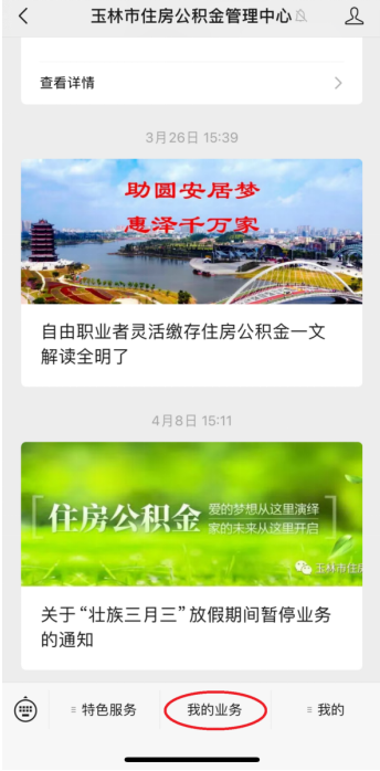 登录“玉林市住房公积金管理中心”微信公众号
