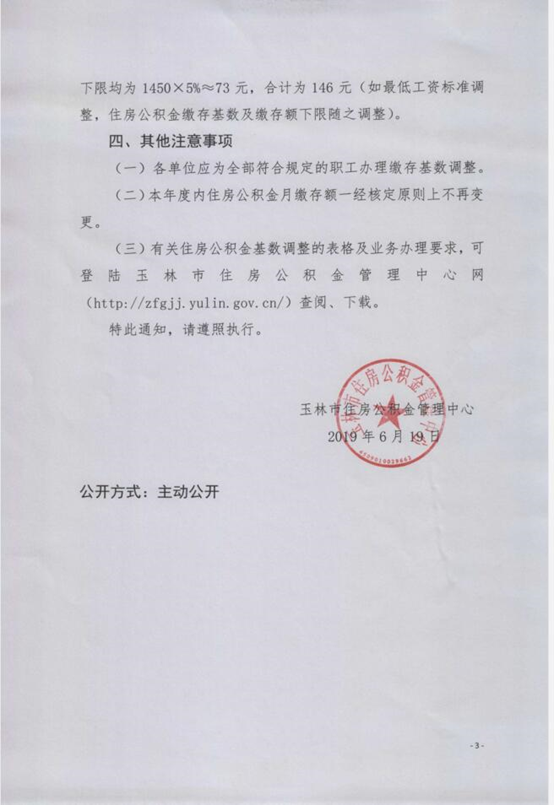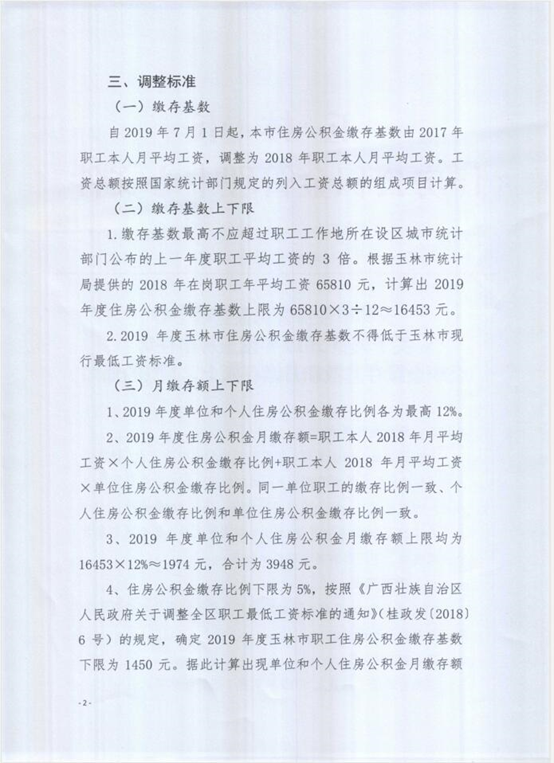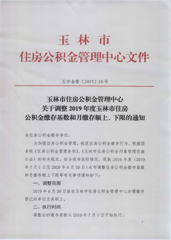 玉林市住房公积金管理中心关于调整2019年度玉林市住房公积金缴存基数和月缴存额上、下限的通知