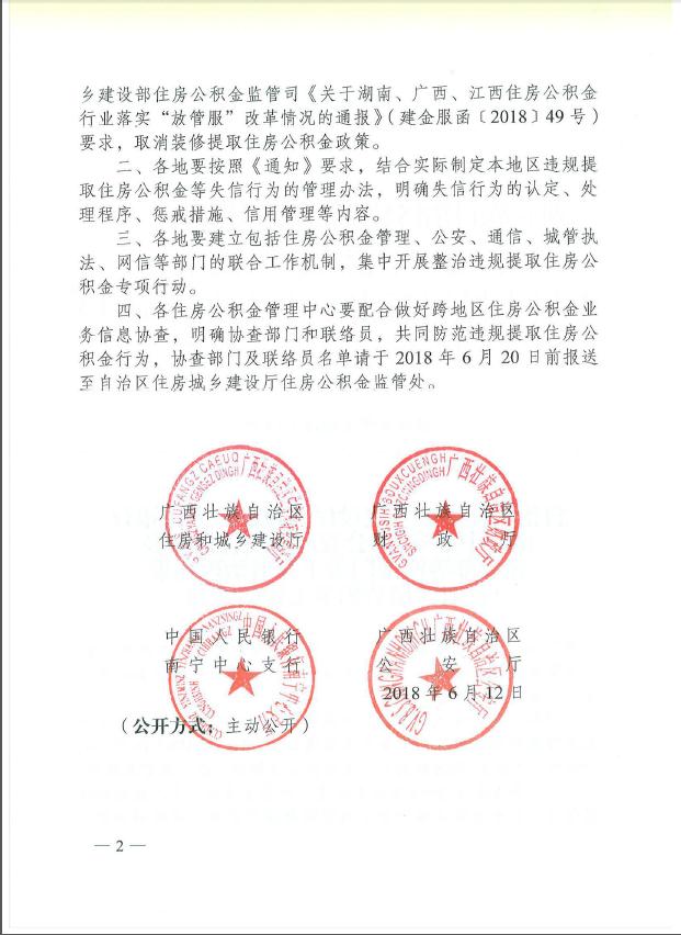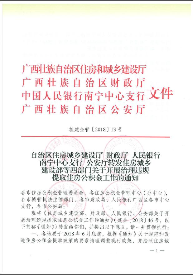 桂建金管【2018】13号 自治区住房城乡建设厅 财政厅 人行 公安厅转发住房城乡建设部等四部门关于开展治理违规提取住房公积金工作的通知