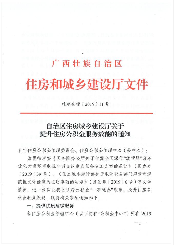 自治区住房城乡建设厅关于提升住房公积金服务效能的通知
